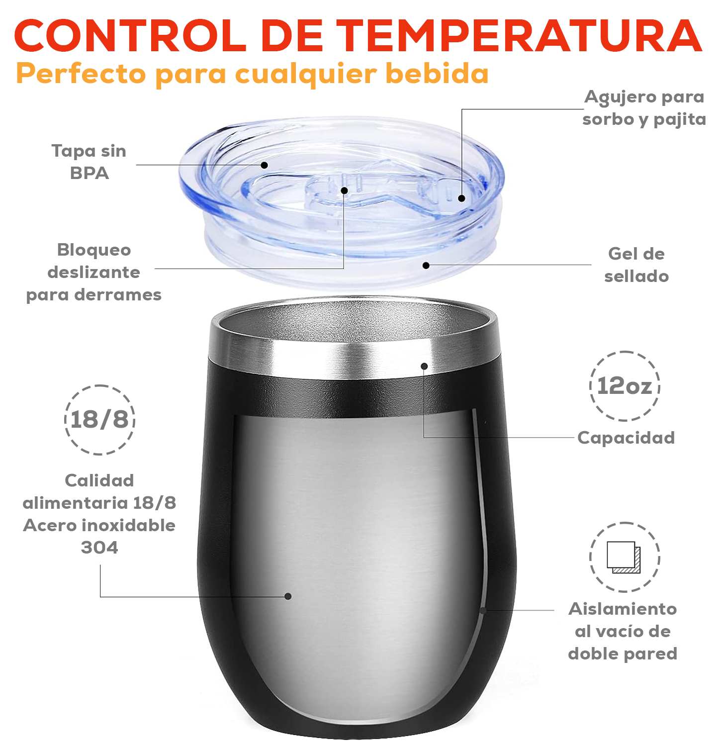Vaso Tumbler Térmico Americano de Acero Inoxidable de 12 oz